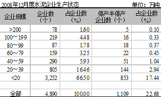 由于2008年水泥需求市場明顯下降,一些大企業(yè)主動進行限產,以保持市場正常供需關系。