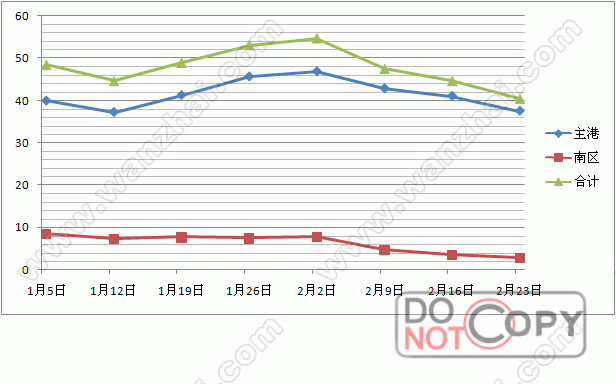 截止至2009年2月25日,萬(wàn)寨港庫(kù)存41.7萬(wàn)噸,其中主港區(qū)37.8萬(wàn)噸,南區(qū)3.9萬(wàn)噸。