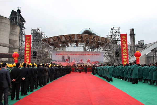 2009年2月27日,由安徽海螺集團(tuán)公司投資興建的蕪湖海螺公司三期兩條日產(chǎn)12000噸熟料生產(chǎn)線及配套的36兆瓦余熱發(fā)電項目正式破土動工。該項目建成投產(chǎn)后,蕪湖海螺公司熟料總產(chǎn)能將突破1500萬噸,余熱發(fā)電能力將增加到6億度,成為當(dāng)今世界最大的水泥熟料生產(chǎn)基地。同時,對加速安徽省水泥工業(yè)結(jié)構(gòu)調(diào)整、推進(jìn)節(jié)能減排、增加社會就業(yè)、繁榮地方經(jīng)濟(jì),將會發(fā)揮重要作用。