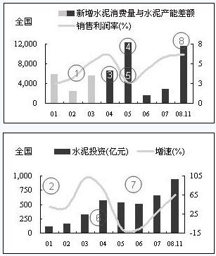 7、2008年水泥投資超出1000億元,新增消費(fèi)量和產(chǎn)能的差額再度拔高