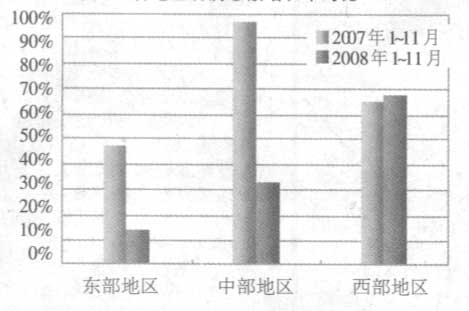 從地區(qū)看,經(jīng)濟效益增速回落最快的是中部地區(qū),而西部地區(qū)繼續(xù)保持增長態(tài)勢。2008年1~11月東部地區(qū)實現(xiàn)利潤總額為470億元,比上年同期增長13.9%,增速同比回落33.2個百分點;中部地區(qū)實現(xiàn)利潤總額為263億元,比上年同期增長33.1%,增速同比回落63.2個百分點,黑龍江和湖南利潤總額同比回落幅度較大,分別回落了296個和101個百分點;西部地區(qū)實現(xiàn)利潤總額比上年同期增長67.5%,增速同比加快2.4個百分點。