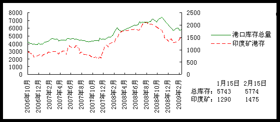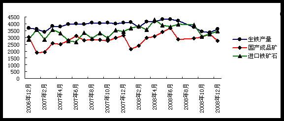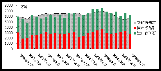 春節(jié)后第一個月,國內(nèi)鐵礦石市場出現(xiàn)再一輪的跌勢,中國鋼鐵企業(yè)在08年四季度遭受的傷痛還沒有平復(fù),又一波打擊已經(jīng)襲來。春節(jié)后第一周鋼價和礦價的強硬拉動,很快被真實的下游需求情況所拉垮。鋼鐵企業(yè)重新回到生存線附近,甚至已有些小型企業(yè)再一次關(guān)停了高爐,開始停產(chǎn)檢修。鋼企的成品庫存開始升高,相應(yīng)的原料采購的積極性也逐漸減弱,鐵礦石外盤價格和現(xiàn)貨市場都出現(xiàn)了持續(xù)下跌,鋼廠對后期鋼市持悲觀心態(tài),鐵礦石市場價格在3月份很難有明顯的起色。 一、09年1月-09年2月鐵礦石供求態(tài)勢 2009年1月中國進口鐵礦石3265萬噸,比08年12月的3452萬噸下降5.4%,但考慮到08年12月有22個工作日,而09年1月只有17個,因此08年12月為156萬噸/工作日,09年1月的日均進口量為183萬噸/工作日,比08年12月增加了27萬噸/日,增幅17.3%,這也是2008年5月以后8個月以來日均進口的最高。 2月鋼材市場開始調(diào)頭向下,各品種價格全面回落,一些分析認為,鋼材市場政策刺激下的周期性反彈,可能已趨于尾聲,未來鋼材市場又將步入新一輪低迷調(diào)整時期。眾多鋼鐵企業(yè)重新恢復(fù)生產(chǎn),并補充庫存的腳步因此減緩,未來中國進口鐵礦石需求可能重新調(diào)頭向下,呈現(xiàn)周期性回落趨勢。 歐洲銀行預(yù)測,2009年全球經(jīng)濟增長率不超過1%,明顯低于2008年2.5%的增長速度,更大大低于過去4年中3.5%至4%之間的增速。雖然中國取消了鋼材出口關(guān)稅,但2009年中國出口仍可能大幅下降,預(yù)計全年出口將下降到4000萬噸左右,這將比2008年下降34%之多,大量出口鋼材回流對未來中國國內(nèi)鋼材市場將是非常嚴峻的挑戰(zhàn),對未來鐵礦石市場的負面影響不可小視。