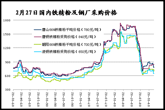 2月末華東地區(qū)鋼廠國內(nèi)鐵精粉采購價格表