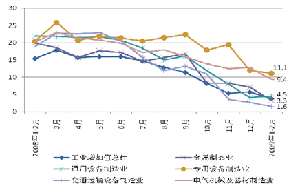 從工業(yè)主要產(chǎn)品產(chǎn)量的增減情況看,金屬切削機(jī)床、飼料加工機(jī)械、包裝專用設(shè)備、小型拖拉機(jī)、機(jī)車、冷柜、空氣調(diào)節(jié)器等均是同比回落20%以上;汽車基本上是零增長;民用鋼質(zhì)船舶雖然同比增長了66.2%,但是比2008年后兩個(gè)月相比,平均月量下降了121萬總噸,下降幅度達(dá)35.5%。即使同2008年下半年相比,平均每月下降13萬總噸,降幅5.6%。