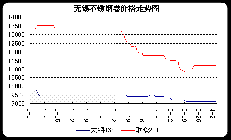 圖6:2009年1月-4月無錫市場430、201冷軋卷價格走勢圖