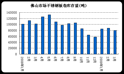 圖9:佛山市場不銹鋼板卷庫存量走勢圖
