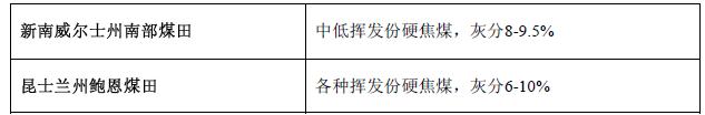 澳大利亞主要煉焦煤產(chǎn)區(qū)的煉焦煤質(zhì)量如下: