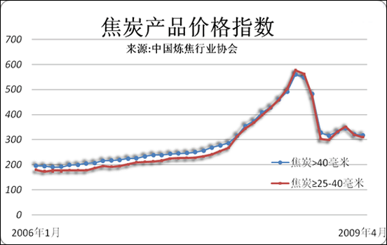 在全球金融危機的沖擊下,2008年我國累計生產(chǎn)焦炭3.27億噸,同比減產(chǎn)850萬噸,降幅約2.54%。這也是自1999年以來焦炭產(chǎn)量首次出現(xiàn)負增長。但是從去年12月以來,焦炭產(chǎn)量逐月小幅回升,3月份焦炭產(chǎn)量達2597.35萬噸,同比繼續(xù)下降6.8%,環(huán)比卻增長了7.16%。據(jù)中焦協(xié)黃金干會長表示,目前國內(nèi)焦炭產(chǎn)能在3.9億-4億噸,然而今年的需求量至多在2.8億?D2.9億噸左右,產(chǎn)能過剩超億噸。我國焦炭產(chǎn)能已嚴重過剩,企業(yè)只有堅持減產(chǎn)限產(chǎn)、控制總量,才能緩解虧損程度。截止到4月底,我國焦炭價格最低已經(jīng)跌至1350元/噸。進入5月份以后,焦炭行情仍將繼續(xù)在低位盤整。