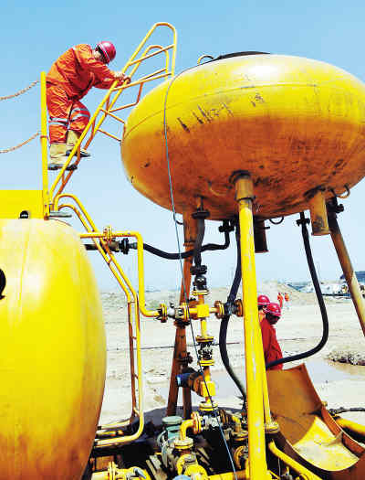 神華寧夏煤業(yè)集團(tuán)引進(jìn)先進(jìn)設(shè)備,抽取煤礦瓦斯氣體發(fā)電。自2008年以來,共利用瓦斯氣體發(fā)電690萬千瓦時(shí)以上,創(chuàng)造經(jīng)濟(jì)價(jià)值超過300萬元。圖為負(fù)責(zé)環(huán)境安全的員工在查看設(shè)備運(yùn)行情況。