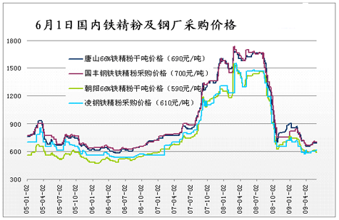 自5月底,新日鐵與力拓達成了pb粉礦和yandi粉礦執(zhí)行32.95%降幅、p b塊礦執(zhí)行44.46%降幅的鐵礦石國際談判首發(fā)價格以后,進口礦外盤報價及港口現(xiàn)貨報價均出現(xiàn)了較大的漲幅,部分國內(nèi)礦供貨商也欲順勢上調(diào)鐵精粉出廠價格,但由于國內(nèi)多數(shù)鋼廠并未立刻調(diào)整礦石使用皮幣,對國內(nèi)礦需求依然較低,短期內(nèi)國內(nèi)礦市場成交價格表現(xiàn)較為穩(wěn)定,價格沒有明顯的變化,預(yù)計6月份在鋼材市場保證穩(wěn)定的基礎(chǔ)上,內(nèi)礦市場將出現(xiàn)連鎖反應(yīng),市場有一定的上漲空間。