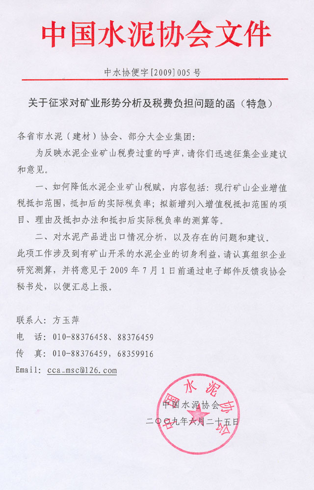 關于征求對礦山形勢分析及稅費負擔問題的函(特急)