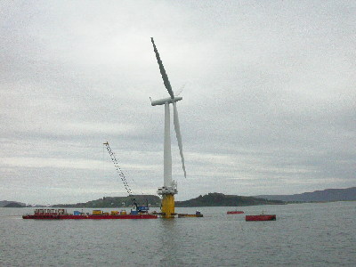 “Hywind”是一個(gè)由挪威、丹麥、德國、英國和荷蘭等多國參與的國際合作項(xiàng)目。讓風(fēng)力發(fā)電機(jī)浮在海上的想法屬挪威國家石油公司原創(chuàng),然后投資約4億克朗(包括政府投資5900萬克朗);2.3兆瓦風(fēng)力渦輪發(fā)電機(jī)組是西門子公司提供;浮標(biāo)系統(tǒng)和纜線由法國德克尼普公司和耐克森公司負(fù)責(zé)生產(chǎn)安裝;荷蘭提供監(jiān)測(cè)檢修船等。