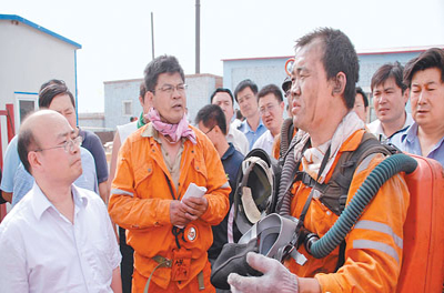 6月30日,救援人員正在向地面指揮人員匯報(bào)井下情況