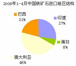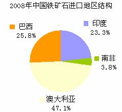 與08年相比,今年1-4月份我國進(jìn)口巴西礦和澳礦的占比均有所回落,印礦和南非礦占比卻在上升。