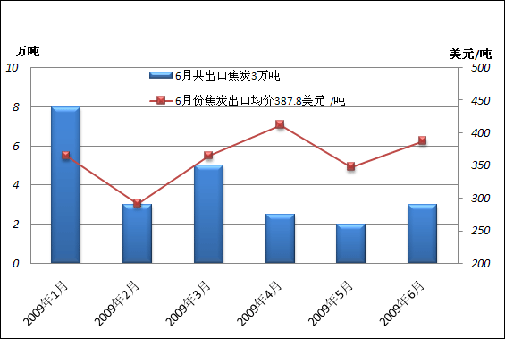 圖1 2009年1-6月焦炭出口數量及均價走勢圖