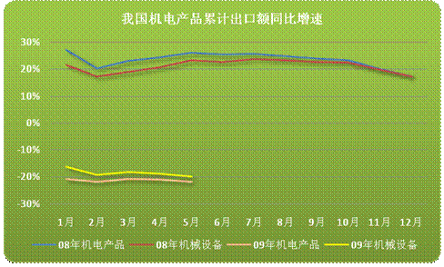 2008年我國(guó)機(jī)電產(chǎn)品的整體出口增速強(qiáng)勁,進(jìn)入4季度后出現(xiàn)疲軟的趨勢(shì),最后以弱勢(shì)收官。2009年機(jī)電產(chǎn)品出口形勢(shì)較之08年出現(xiàn)了天昂之別,同比保持20%的負(fù)增長(zhǎng)。分析認(rèn)為:機(jī)電出口訂單下降的主要原因,一是國(guó)際上對(duì)高價(jià)商品的購買力下降;二是國(guó)外市場(chǎng)正在去庫存,對(duì)新產(chǎn)品的采購下降,另部分已經(jīng)完成庫存消化的企業(yè)也盡量減少了備貨量。