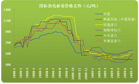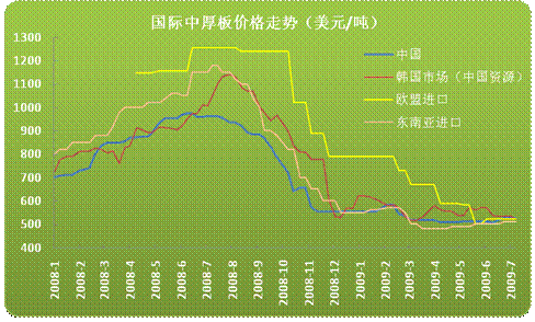 4月份以來,美國(guó)的各項(xiàng)先行指標(biāo)均出現(xiàn)了不同程度的反彈,美國(guó)的PMI指數(shù)從年初的35.6提升至6月的44.8,尤其是生產(chǎn)指數(shù)已經(jīng)反彈至50以上。但是美國(guó)5月份工業(yè)行業(yè)的產(chǎn)能利用率從4月份的69%下降至68.3%,遠(yuǎn)遠(yuǎn)低于1972年以來的平均水平;制造業(yè)的產(chǎn)能利用率降至65%,也創(chuàng)下1948年該數(shù)據(jù)有記錄以來的最低值。另外與美國(guó)隔海相望的歐盟也不盡如人意,6月份歐盟27國(guó)制造業(yè)產(chǎn)能利用率僅為71%,為近20年來的新低。而高失業(yè)率也同樣成為歐盟經(jīng)濟(jì)復(fù)蘇的絆腳石。另外作為我國(guó)鋼鐵重要的貿(mào)易伙伴國(guó),韓國(guó)的經(jīng)濟(jì)形勢(shì)也不容樂觀,一季度GDP同比下降了1.6%,且5月份的工業(yè)生產(chǎn)指數(shù)同比為-8.96%。