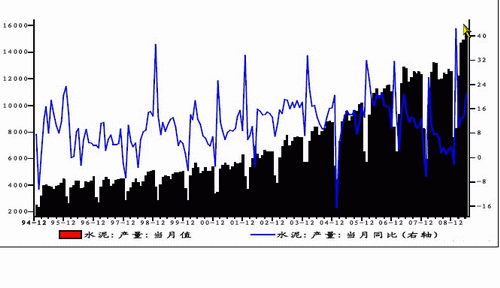 相關(guān)信息顯示:2009年上半年水泥行業(yè)繼續(xù)保持產(chǎn)銷增長、利潤上升的態(tài)勢,但利潤增速較上年同期明顯下滑,水泥價(jià)格有所下滑,地區(qū)分化顯著。新增產(chǎn)能的過快增長能否得到遏制,成為市場關(guān)注的焦點(diǎn)。 以下是對(duì)各相關(guān)數(shù)據(jù)的具體分析。 根據(jù)wind數(shù)據(jù)系統(tǒng)的統(tǒng)計(jì)信息:2009年1-6月,全國水泥產(chǎn)量為 73462萬噸,同比增長14.86%,增速高于上年同期約6.16個(gè)百分點(diǎn)。6月份水泥產(chǎn)量再創(chuàng)單月產(chǎn)量歷史新高,達(dá)到15760萬噸,同比增長 20.95%,增速高于上年同期13.05個(gè)百分點(diǎn)。見圖1: