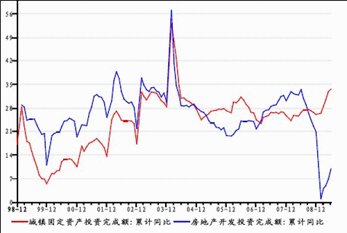 圖6 99年以來城鎮(zhèn)固定資產(chǎn)投資及房地產(chǎn)開發(fā)投資累計(jì)增速變化