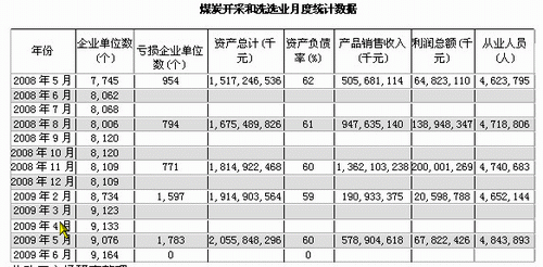 2009年1-5月煤炭開采和洗選業(yè)統(tǒng)計(jì)數(shù)據(jù)