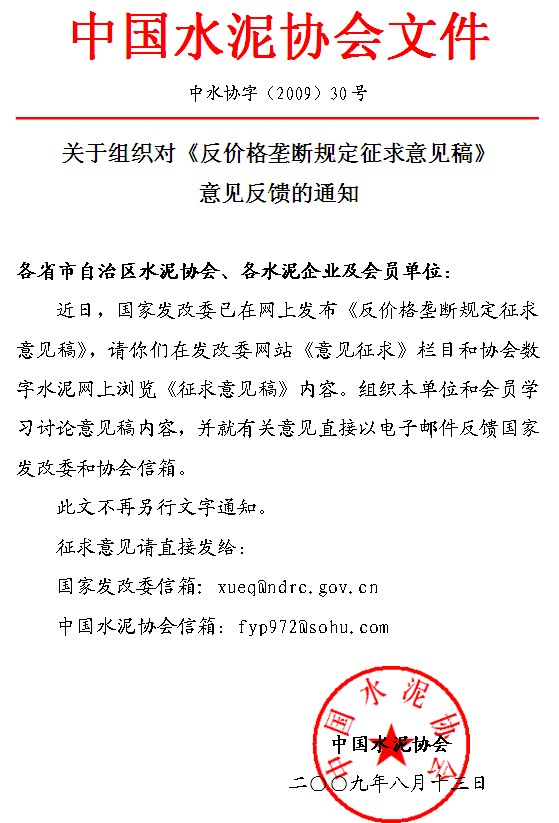 關(guān)于組織對(duì)《反價(jià)格壟斷規(guī)定征求意見稿》意見反饋的通知