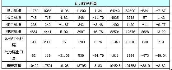 備注:無(wú)煙煤約75%用作動(dòng)力煤;煉焦煙煤中,分不出牌號(hào)的全部用作動(dòng)力煤,氣煤約70%用作動(dòng)力煤;洗煤過(guò)程中產(chǎn)生的中煤也全部用作動(dòng)力煤。