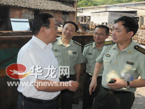 重慶市政府副秘書長王泰來(左)在事故現(xiàn)場指揮救援