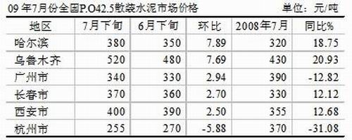 ——7月,水泥市場的還未進(jìn)入銷售旺季,全國大部分地區(qū)水泥價(jià)格平穩(wěn),東北和西北價(jià)格成為7月的亮點(diǎn)。