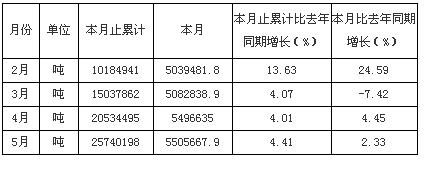 2009年1-5月山東洗煤產(chǎn)量統(tǒng)計(jì)