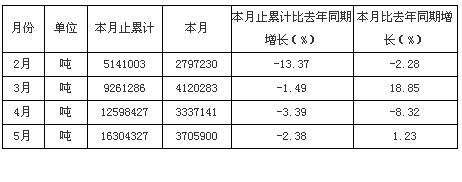 2009年1-5月黑龍江洗煤產(chǎn)量統(tǒng)計