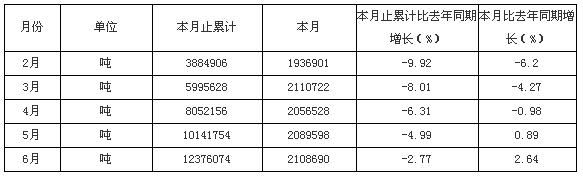 2009年1-6月江蘇原煤產(chǎn)量統(tǒng)計(jì)