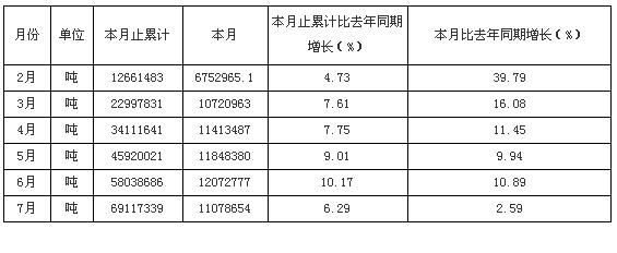 2009年1-7月貴州原煤產(chǎn)量統(tǒng)計(jì)