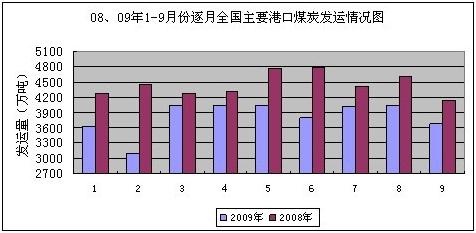 3、國內(nèi)沿海集散地區(qū)煤炭供求形勢低迷。從今年1-9月份各月鐵路和港口煤炭發(fā)運的累計增減狀況看(參見附表),同比全國主要港口煤炭發(fā)運量的萎縮程度明顯高于鐵路煤炭發(fā)運的萎縮程度,這種狀況,一方面可能表明國內(nèi)沿海消費地區(qū)煤炭需求形勢繼續(xù)低迷;另一方面應該與今年我國煤炭進口大幅度增加、致使國內(nèi)沿海消費地區(qū)的煤炭消費對國內(nèi)煤炭的依賴程度有所下降有關。