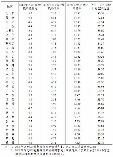 附表:2008 年各省自治區(qū)直轄市節(jié)能目標(biāo)完成情況