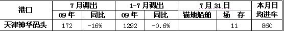 天津神華碼頭1-7月份煤炭調出統(tǒng)計