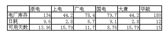 2009年11月08日電廠庫(kù)存及日耗情況統(tǒng)計(jì)