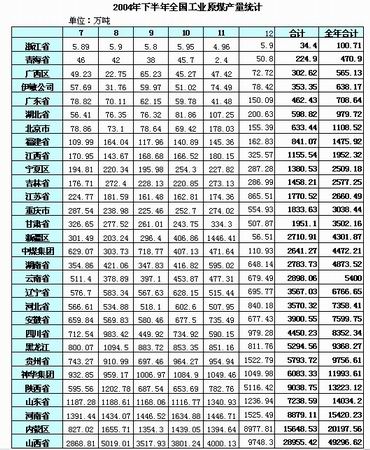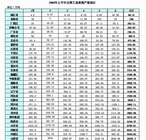 2004年全國工業(yè)原煤產(chǎn)量統(tǒng)計