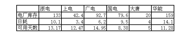 2009年11月19日直供電廠煤炭庫(kù)存統(tǒng)計(jì)