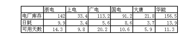 2009年11月27日直供電廠煤炭庫存統(tǒng)計