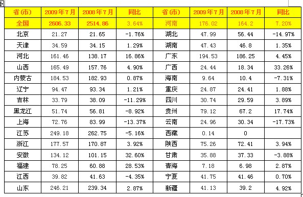 2009年7月全國(guó)火電發(fā)電量統(tǒng)計(jì)