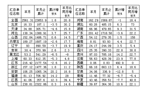2009年10月全國火電發(fā)電量統(tǒng)計