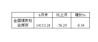 2008年6月全國煤炭社會庫存統(tǒng)計