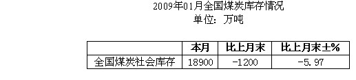 2009年1月全國煤炭社會庫存統(tǒng)計