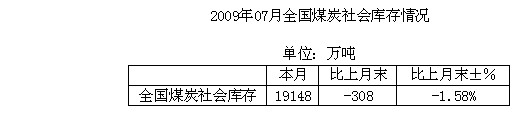 2009年7月全國煤炭社會庫存統(tǒng)計