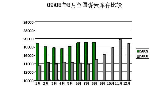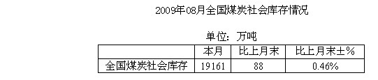 2009年8月全國煤炭社會庫存統(tǒng)計