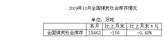 2009年10月全國(guó)煤炭社會(huì)庫(kù)存統(tǒng)計(jì)