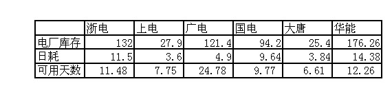 2009年12月2日直供電廠煤炭庫存統(tǒng)計