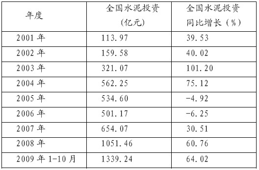 預計2010年水泥市場可能保持相對平衡的格局,局部的短缺和局部的過剩依然存在 一般水泥新增產能的建設周期為12-14個月。從表1及圖2可看到:2008年、2009年水泥固定資產投資增長均較快。有關信息顯示:2009年底我國新增水泥產能可能為2.6億噸左右,2009年我國淘汰落后水泥產能可能為6000——8000萬噸左右。據此估算,2009年底的實際新增水泥產能約為1.8億噸——2億噸。