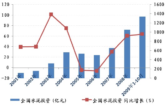 圖2:2001年以來水泥固定資產投資額的逐年變化