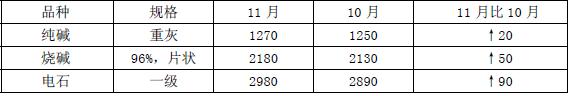 根據(jù)國家統(tǒng)計局?jǐn)?shù)據(jù),11 月份純堿產(chǎn)量205.3 萬噸,同比增長52.1%,日產(chǎn)創(chuàng)歷史新高,日均產(chǎn)量環(huán)比增長25.3%,1-11 月累計純堿產(chǎn)量1836.9 萬噸,同比增長7.2%;燒堿產(chǎn)量182.7 萬噸,同比增長52.9%,日均產(chǎn)量環(huán)比增長6.0%,1-11 月累計燒堿產(chǎn)量1762.7萬噸,同比增長6.8%。